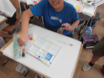 」と言わんばかりにダイナミックに取り組んでいく子もいれば、色の繊細な重なりを表現しようとする子もいます。