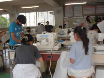 ミシンなんて、普段はなかなか使わないから悪戦苦闘してる子が多いですが、でもみんな何だか楽しそう