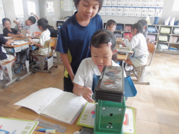 はかりを使って、重さを比べたり量ったりすることができます。友達と協力しながら楽しく学びを進め、深めることができていました