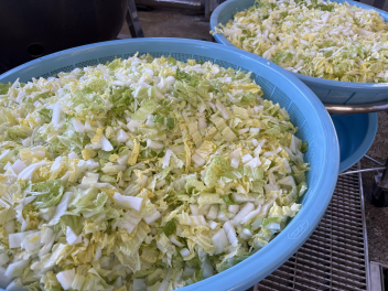 今日は、食物繊維が多く含まれる、さつまいも、ごぼう、白菜、ぶなしめじを取り入れました
