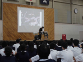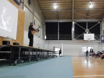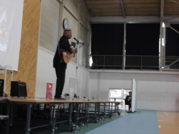 ミゲルさんのすばらしい演奏に、みんなが引き込まれていました!「上を向いて歩こう」や「ピンクパンサー」さらに、生徒のリクエストに答えて「We are the champion」などを演奏していただきました!歌を知っている人は一緒に歌ったり拍手をしたりして大いに楽しんでいました!