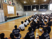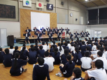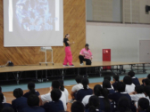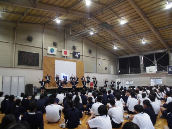 ミゲルさんのすばらしい演奏の後は、開成中生徒の番です!「三遠南信」交流活動の報告、英語スピーチ、ダンス、エレクトーンとドラム演奏まで、普段は披露できない特技を発表していました!!みんなかっこよかったです!