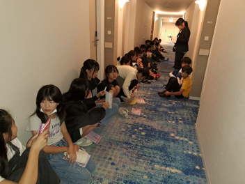 みんな元気にホテルに到着部屋長会で、今夜、明日の朝の動きの確認をしました