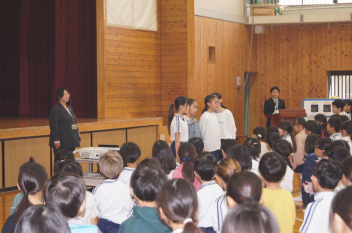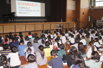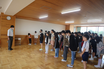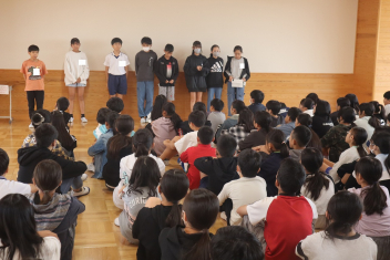 神久呂小の朝会は、6年代表児童による朝の挨拶からスタートします明るい挨拶が、体育館いっぱいに響き渡りましたsmiley