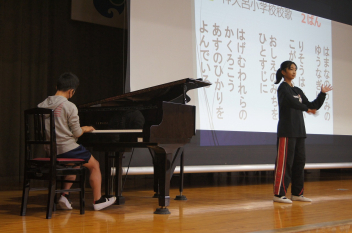 朝会の最後は、みんなで校歌を歌いました今度は、体育館いっぱいに歌声が響き渡りました