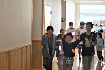 1年生は、6年生と一緒に活動場所に移動しますどんな遊びをするのかな