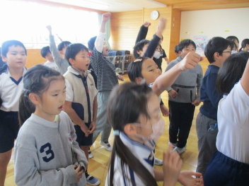 •  運動会が近づき、どのクラスも練習に熱が入ってきました!今日の昼休みは、6年生が主催となって、応援の練習会を行いました。どの子も、気合を入れて大きな声を出すことができていました