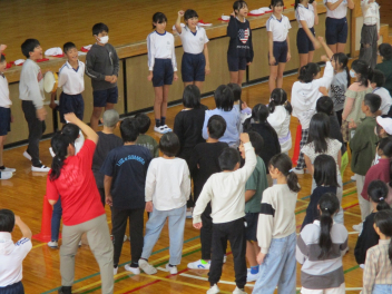• 30日(木)の昼の時間、本年度3回目の縦割り遊びがありましたsmiley日々の縦割り清掃でも一緒に活動しているだけに、すっかり同じ班の子にも慣れた中での遊びだったので、どの班も楽しそうな声が、響き渡っていました