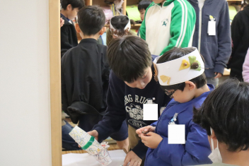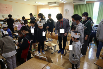 魚釣りゲーム今日は、いつも反対で、1年生が6年生に遊び方を教えます