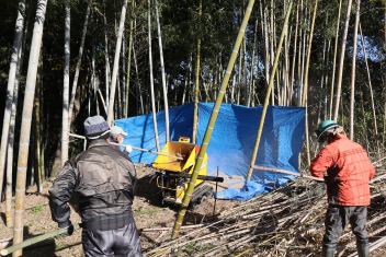 昨日9日には、おおくぼ里山育成会の皆さんのご協力のもと、竹チップ作りの見学をしました