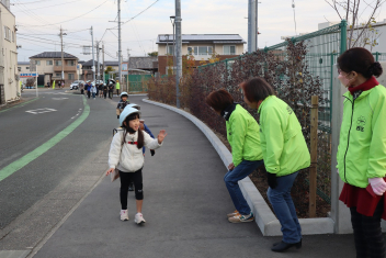 普段、挨拶ができない子も、地域の皆さんの明るい挨拶につられて、挨拶をする姿も見られました
