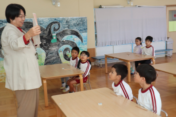 今日16日には、校長先生が神田原保育園に出向き、小学校体験を行いました