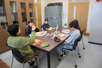 カードには、「給食の思い出は?」「好きな教科ベスト3」など、話すテーマが書かれています話が盛り上がり、次第に子供たちも笑顔に・・smiley