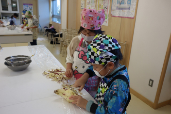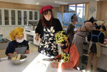 •  今日18日、たけのこ学級の子たちが、スイートポテト作りに挑戦しました