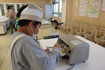 「小学校は、給食って自分たちでわけるのだねこぼさずできるかな・・kiss