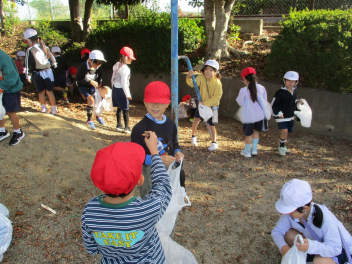 •  昨日4日(火)、1年生が生活科の時間に秋見付けに出掛けました場所は、神久呂中学校です少し肌寒かったですが、気持ちの良い秋空の下、1年生の子供たちは夢中になってどんぐりや木の葉を拾っていました全身で秋を感じていましたsmiley