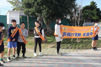 生活安全委員会の子たちや、挨拶ボランティアの子たちも声掛け運動に参加してくれました挨拶の声が響き渡る気持ちの良い朝となりました