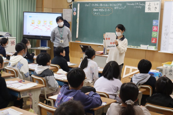 4年生外国語活動 果物や野菜の名前を覚えていますsmileyALTの発音をよく聞きながら、繰り返し声に出します