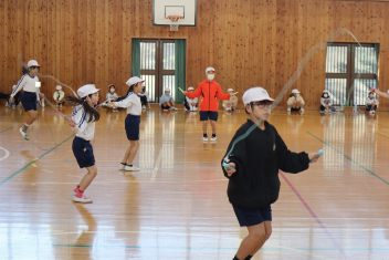 今日のために、昼休みに練習をしていたクラスもありました前跳び、あやとびリレー、長縄8の字跳びなど、子供たちは、様々な種目に挑戦しましたクラス対抗戦で行い、一位のクラスには、ドラえもんカップがもらえます