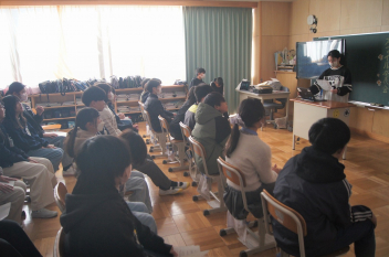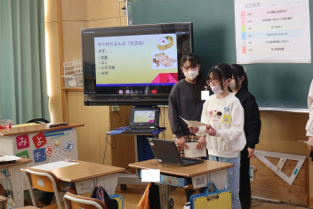 最初は、小学校の紹介です一日の生活の様子や、主な行事などについて写真を見せながら紹介しました