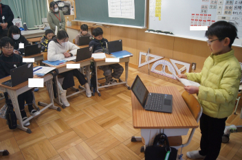 4年生 総合的な学習の時間に、福祉について学習を進めてきました調べたことをタブレットを使ってまとめ、発表しました