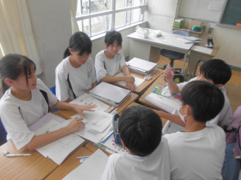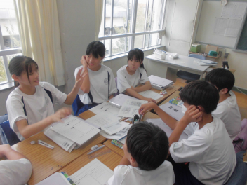 ・仲間が提出したカードを見比べたり、グルーピングしたりして、