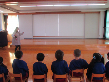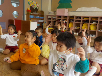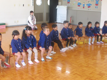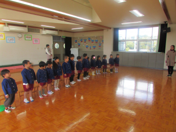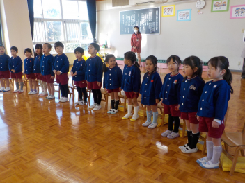終業式では、元気な声で園歌を歌った後、2学期を振り返りながら園長先生の話を聞きましたlaugh