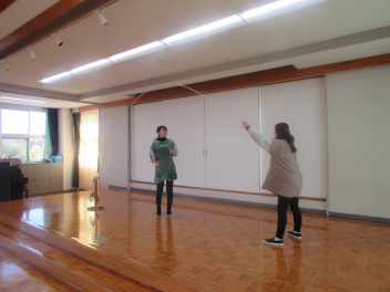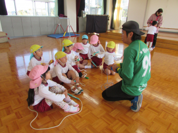縄跳びやボールの投げ方につながる動きも教えてもらい、挑戦