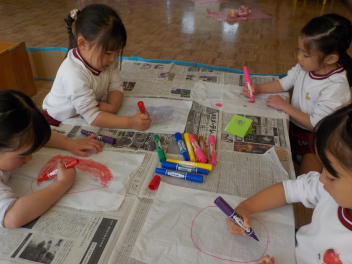 早速、ビニール袋に絵をかいて凧をつくりましたsad