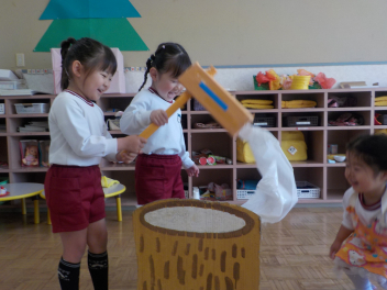 年少組では、「ぺったん、ぺったん」餅つき遊びも始まっています 来週も盛り上がりそうですsmiley