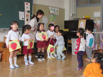 「いちご組になったら、また一緒に遊ぼうね。」「どうぞ。」