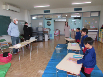 始業式では、園歌を歌い、干支の午や3学期の遊びについての話を聞きましたsmiley