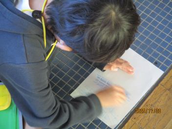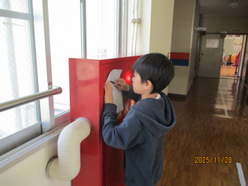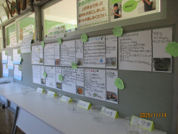 昇降口には、練習で頑張った跡が記されています。