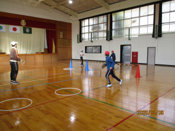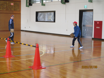 スポンジボールがよく弾み、調子よく打ち返しています。代わりばんこにコートに入り、ラリーを楽しんでいました。