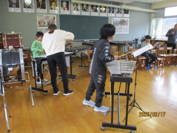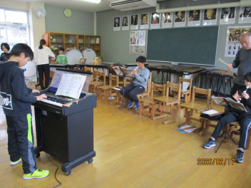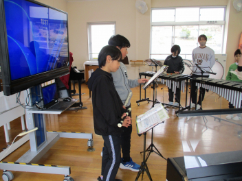 リコーダー、バスマスター、鉄琴の合奏に取り組んでいます。
