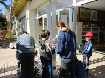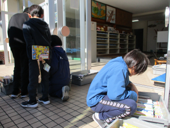 「どんな本を借りたの?」とお互いが手にしている本をのぞき込む様子が、とてもほほえましく感じられます。