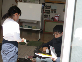 3・4年生では、校内での「自分のお気に入りの場所」を友達に紹介する活動をしました。