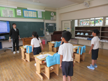 国語科の授業では、先生の読み聞かせを熱心に聞いていました。