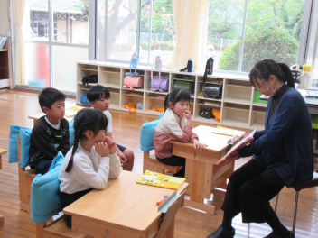 担任による読み聞かせの時間です。