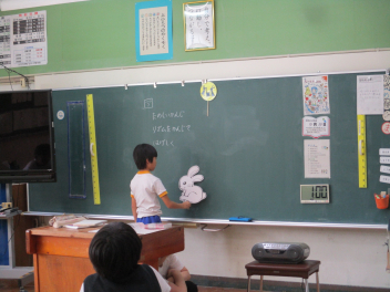 うさぎのペープサートを動かしながら、それぞれ感じたことを述べていきました。