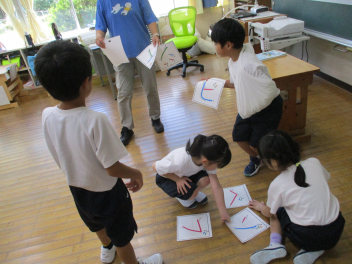 初めは、お互いの息が合いません。数回練習。