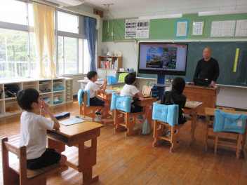 国語科の授業では、先生の読み聞かせを熱心に聞いていました。