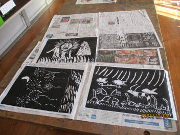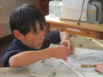 昇降口には、練習で頑張った跡が記されています。