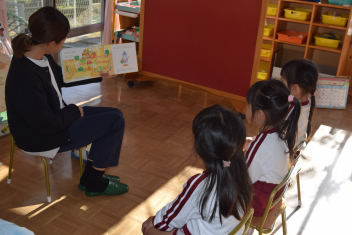 今日はゆりかご、保護者ボランティアによる読み聞かせの日です。