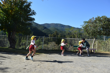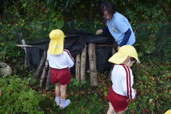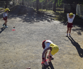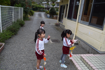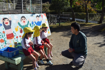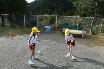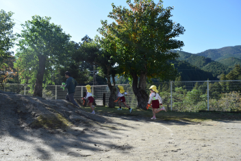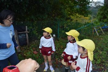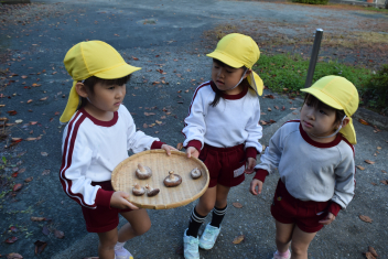 園庭で遊んでいると、秋を見つけたこどもたち。