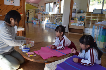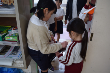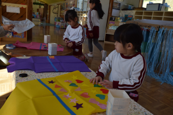 小学校のお兄さん、お姉さんに手伝ってもらいながら飾りをつけていきました。