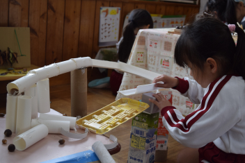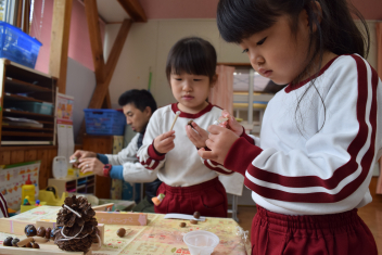 「どんぐりを通すとかわいいよ!」「自分の好きな順番で通したらいいよ!」