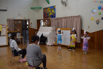 手遊びをしたり、絵本を読んでもらったり楽しい時間を過ごしました。