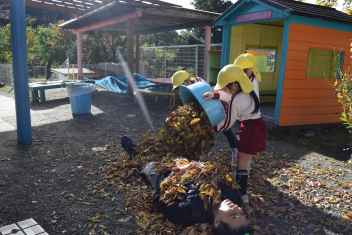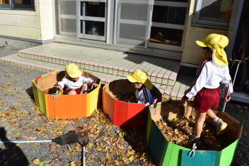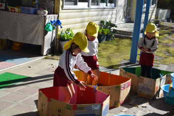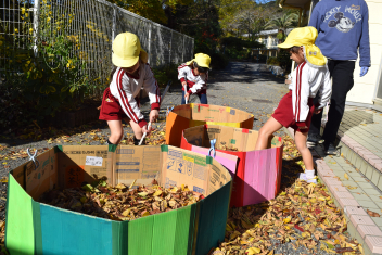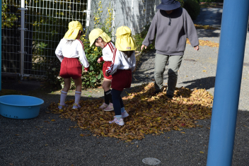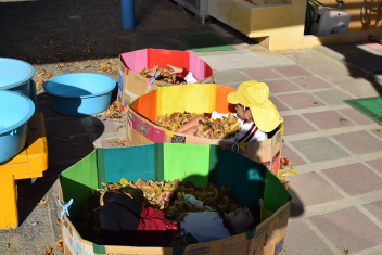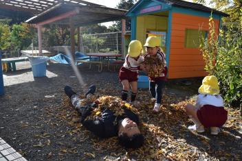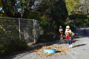 今日も朝から落ち葉で遊びました。