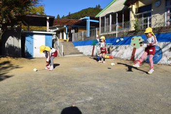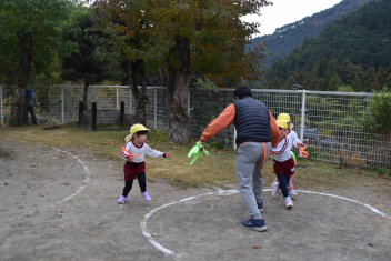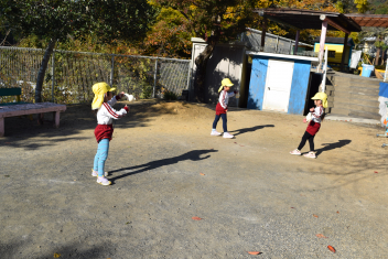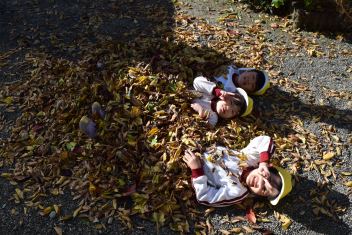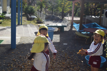 落ち葉が舞うように投げ、舞う様子を楽しみました。